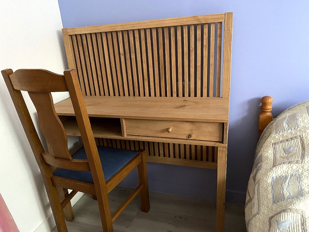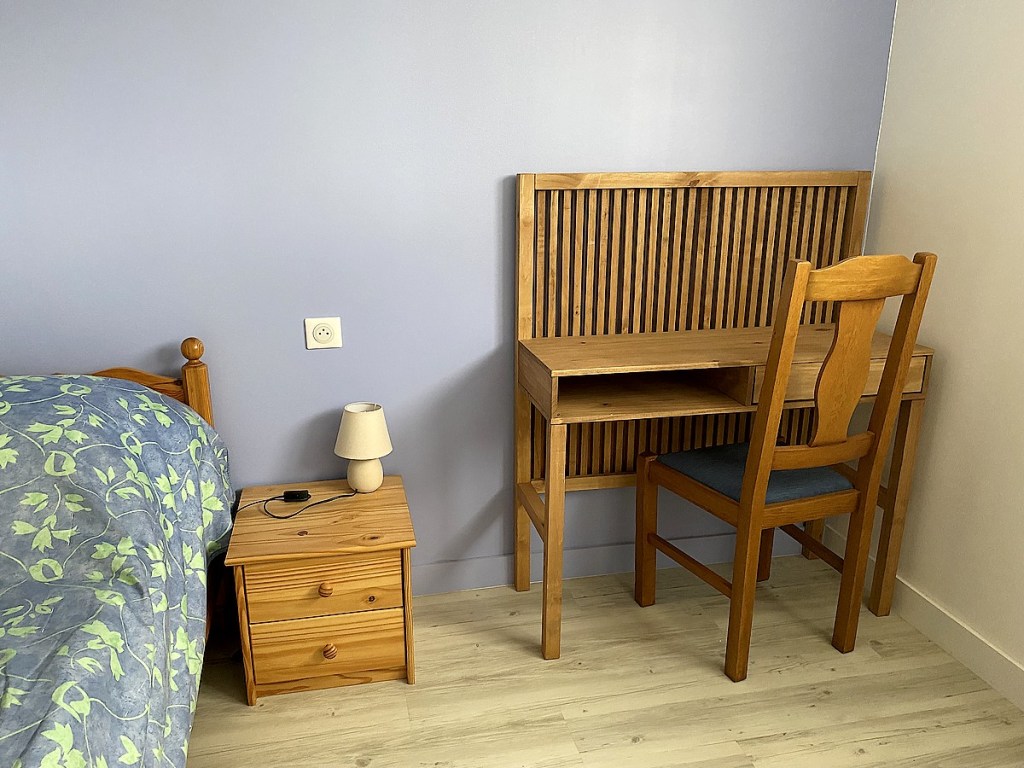 Chaque chambre est meublée d’un lit double, console, commode armoire ou dressing. La salle d’eau et les toilettes sont en commun. Chaque chambre dispose d’une clé.