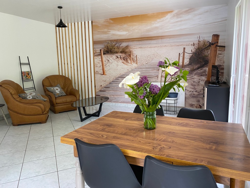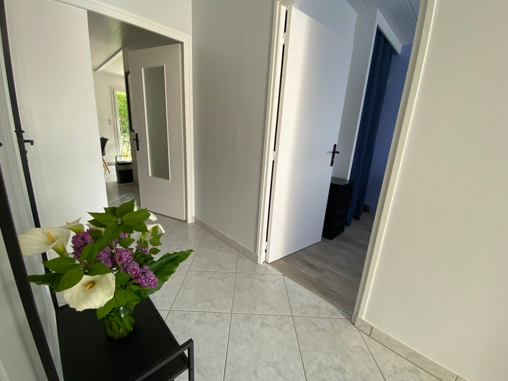 Cette maison comprend au rez-de-chaussée un salon, quatre chambres avec salle d’eau et WC, une cuisine avec coin repas et salon, une terrasse couverte, des toilettes ainsi qu’un jardin. Cette maison partagée dispose de plusieurs marches, c’est pourquoi elle est destinée à des seniors valides.